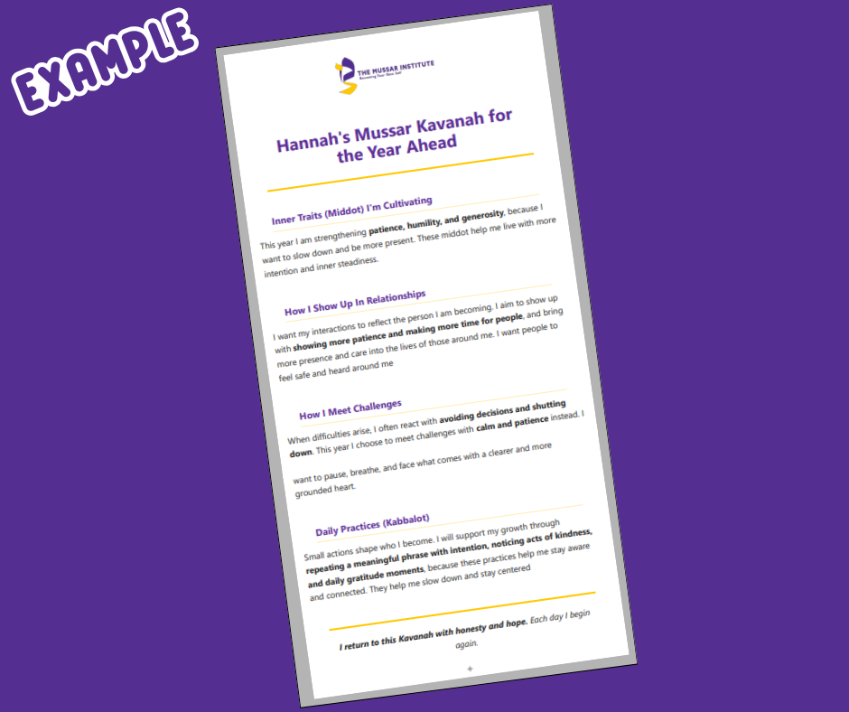 Answer a few short questions about the middot (traits) you would like to strengthen, relationships, and challenges.