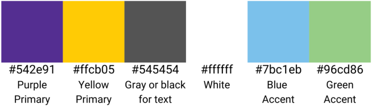 Colors: Purple: Hex Code # 542e91; Yellow: Hex Code #ffcb05